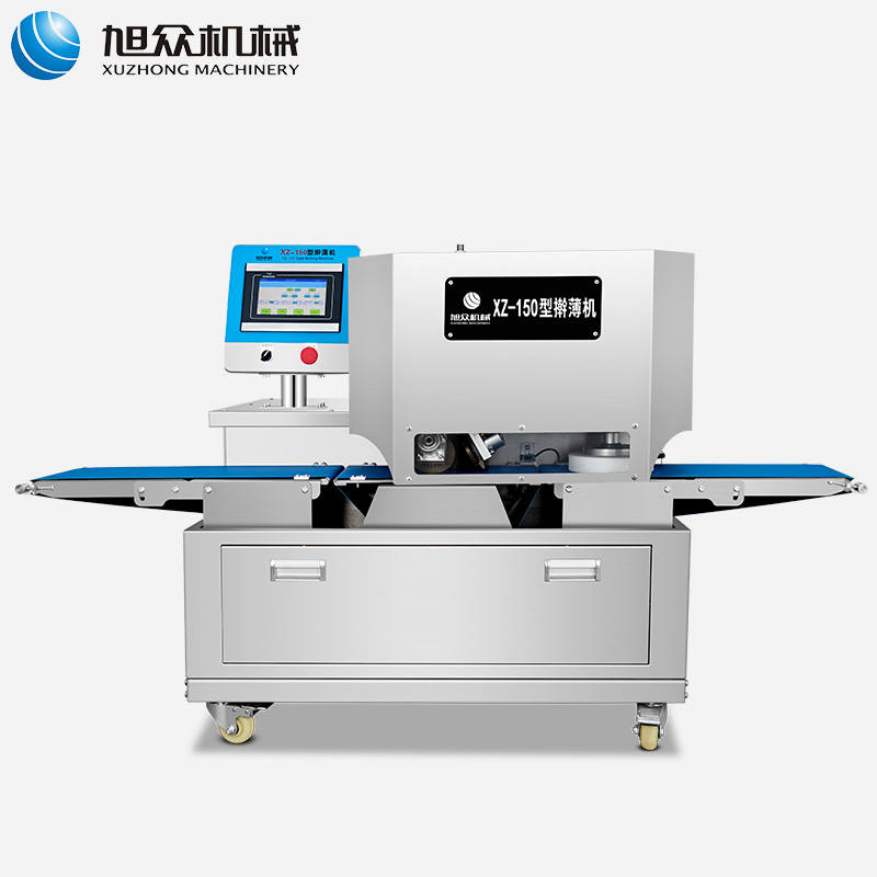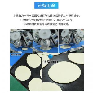 XZ-150型搟薄機(jī),為一種對面團(tuán)可進(jìn)行氣動拍餅或仿手工搟薄的設(shè)備,可根據(jù)用戶需要對面團(tuán)的直徑、厚度進(jìn)行調(diào)整并將面團(tuán)按照設(shè)定的規(guī)格進(jìn)行搓圓摔搟薄。